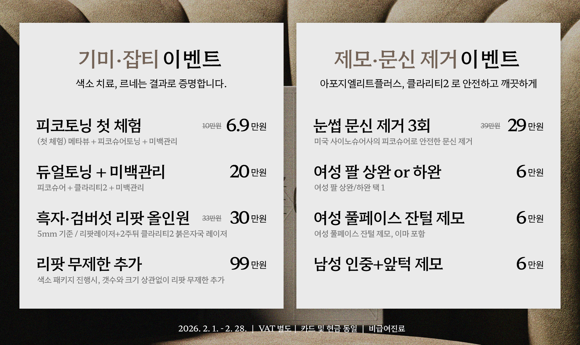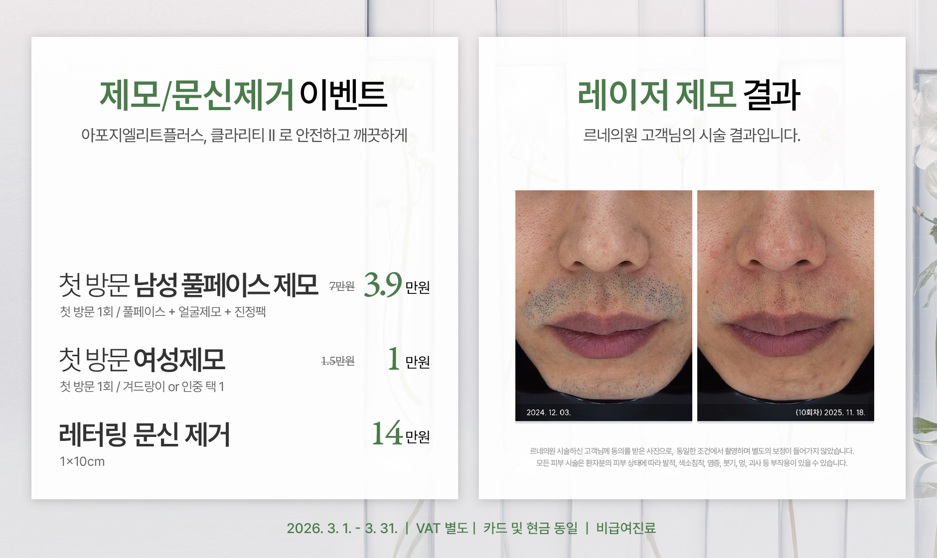 모든 피부 시술은 환자분의 피부 상태에 따라 발적, 색소침착, 염증, 붓기 등의 부작용이 있을 수 있으며,