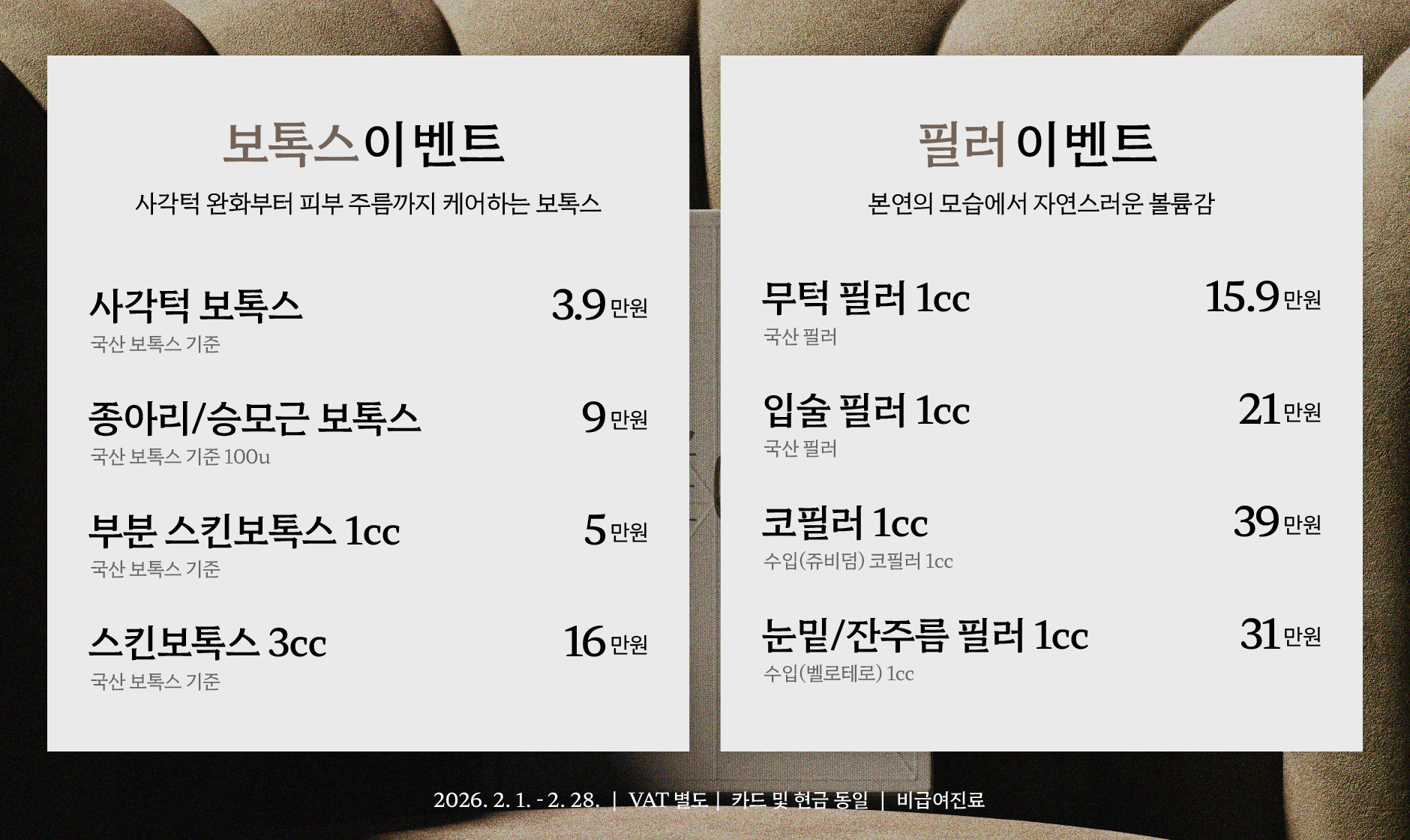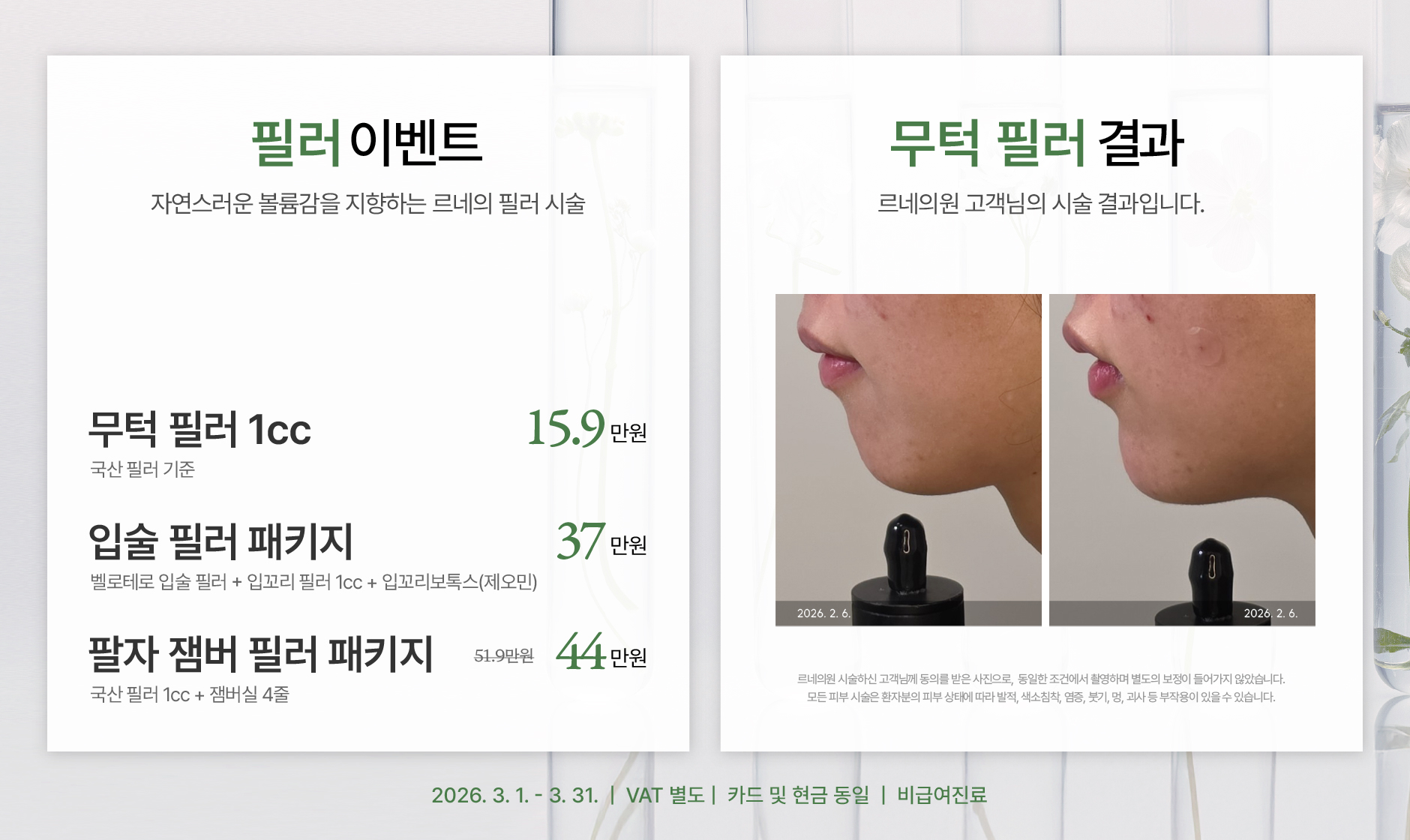 필러 시술 시 알러지 반응, 근육마비, 괴사, 실명 등의 부작용이 발생될 수 있습니다.