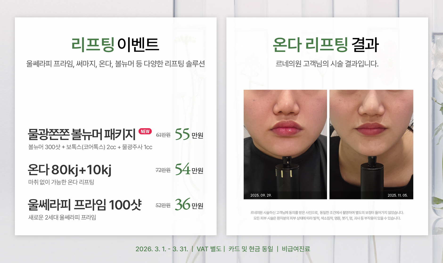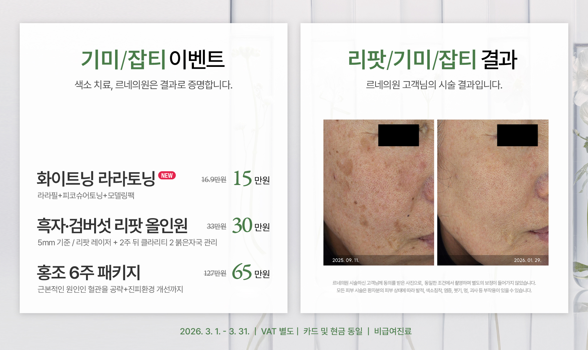 실제 시술하신 고객님의 동의를 받아 게시하였으며, 별도의 보정이 들어가지 않은 동일한 조건에서 촬영한 사진입니다.